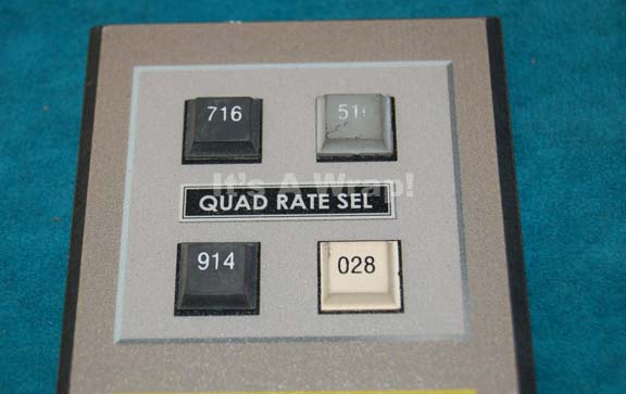 Description: A piece of set dressing featured in various episodes of Star Trek: Enterprise. This item is a piece of sheet plastic with beveled edges and featuring a gray, graphical application, multi-colored, rubber, faux buttons, and labels like “B3-A” and “QUAD RATE SEL”. The item is oriented vertically whereas most are horizontal and measures approx. 9 X 3 inches.