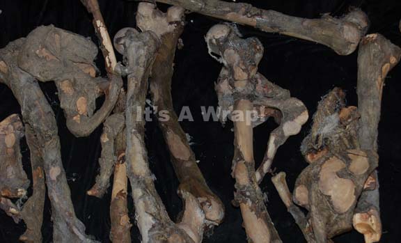 Description: A large lot of set dressings featured in the Star Trek: Enterprise episode “The Andorian Incident” used as the ‘remains’ of the Vulcans who resided at the “P’Jem” monastery in centuries past. This lot consists of multiple faux bones distressed to appear as if they had been lying in their crypts for decades or centuries with the remains of garments and extremely ‘dusty’.