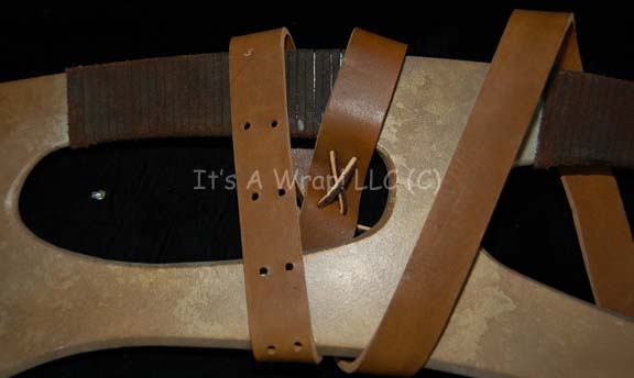 Description: A prop Klingon bat’leth like those featured in the Star Trek: Enterprise episode “Marauders”. The item is sturdy molded rubber on an internal metal frame. The exterior has been painted metallic silver with a bronze coating to appear ‘aged’, and the hand grips have been wrapped in leather laces. The ‘blade’ has been beveled to appear ‘sharp’ and two of the tines have broken off to reveal the metal framework interior. The item was located with an accompanying tan leather strap for wear by the wielder. Measuring approx. 43 X 12 inches, the item represents the last known Klingon bat’leth in the collection that has not been previously available.