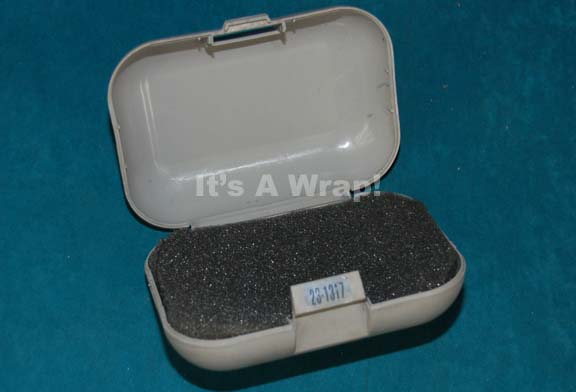 Description: A prop box like those appearing variously in Star Trek episodic television. The item is an injection molded plastic case with a hinged lid and a molded latch. The item is grey with white adhesive detail lines and a medical cadesus on the top as well as a Starfleet numerical application. Inside the item features a foam protective padding. Measures approx. 6.75 X 4.75 X 2.5 inches.