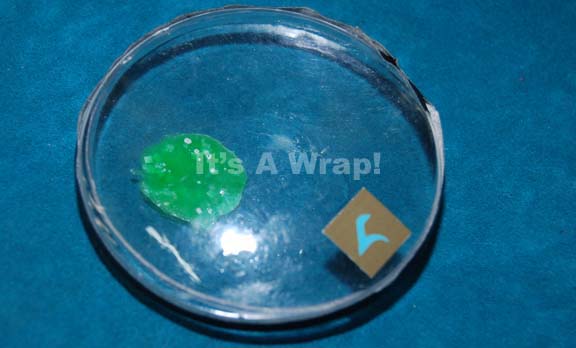 Description: A lot of three Klingon themed prop culture dishes like those appearing variously in Star Trek episodic television. The items are clear plastic lenses with green blots on the inside base, and Klingon graphical applications depicting iconographic letters adhered on one side. The items measure approx. 0.25 X 2.25 inches diameter.