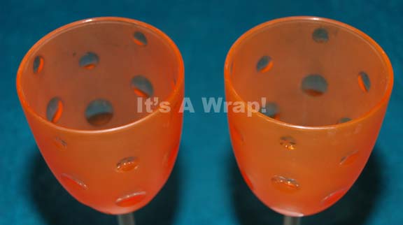 Description: A lot of two matching bar glasses appearing variously in episodes of Star Trek: Deep Space Nine on the set of Quarks! Bar. The items are peach colored plastic drinking vessels with metal stems and bases. The items measure approx. 8.5 X 3.5 inches diameter with 3 inch diameter bases.