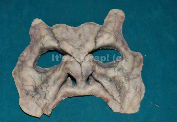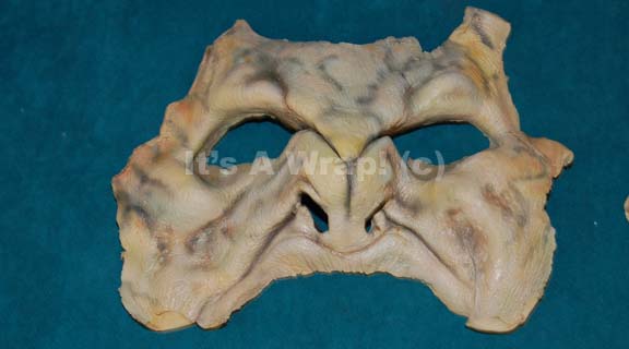Description: A lot of two special effects make-up pieces composing Reman faces like those appearing in Star Trek X: Nemesis. The items are molded foam rubber painted in lifelike skin tones specific to the Remans to cover the cheekbones, brown, nose and around the eyes. The items are in excellent used condition, one being more pale than the other.