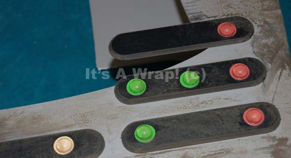 Description: A piece of set dressing similar to those featured in various episodes of Star Trek: Enterprise including “Impulse”. This item is a computer console from the Vulcan starship “Seleya” whose crew were driven mad by the toxic effects that trellium-D has on Vulcans; it is composed of plastic and wood components and features raised black console details with a variety of colored rubber ‘buttons' adhered to the item. The item has been visibly distressed to match the interior of the ship and the state it is in and measures approx. 16 X 15 X 2.25 inches.