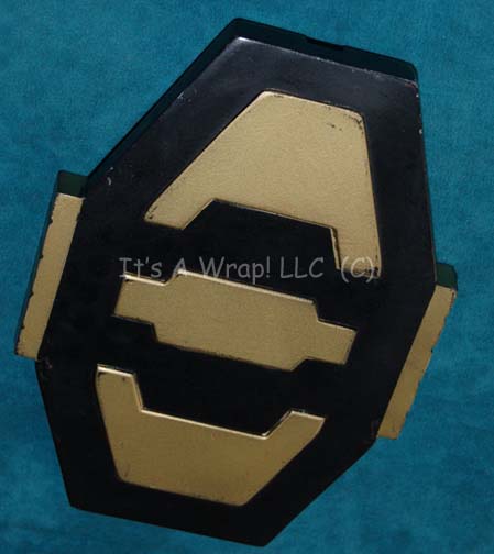 Description: A prop item featured in the Star Trek: Enterprise episode “Borderland”; wherein the “Enterprise NX-01” needs the help of the renegade geneticist, “Arik Soong” (Brent Spiner), to prevent a war with the Klingons being precipitated by the augmented humans “Soong” raised. This item is a PADD (Personal Access Display Device), and is solid cast resin with an elongated octagonal shape, painted black with metallic silver and gold inset that highlight painted accents and a round central ‘display screen' with a reflective graphic depicting ‘Orion’ character letters meant to exhibit selections and prices at a slave auction during scenes in the episode. The item measures approx. 7.25 X 5 X .5 inches.