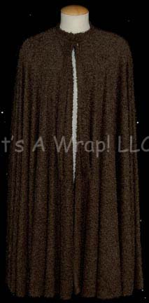 Description: A lot of two capes featured in the Star Trek: Enterprise episode “Civilization”; wherein the “Enterprise NX-01” finds an Earth-like planet, fully inhabited, but that is inflicted with a mysterious blight. This lot includes a long-sleeved, full-length, boucle style, forest-green cape with a hook latch at the neck and an identical burgundy cape with the same hook. A costumer’s tag reads ‘Enterprise #009 Civilization, N.D.’.