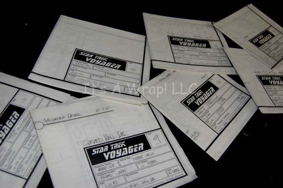 Description: A lot of schematics of sets featured in various episodes of Star Trek: Voyager. This consists of schematics for the “Prison Chamber” from “The Chute” that is labeled as “The Playground”, a vacuform wall from the Voth research ship in “Distant Origin”, the Ilari Imperial Palace from “Warlord”, exteriors of the “New Earth” planet surface in “Resolutions”, the Enaran square from “Remember”, and two schematics of the cavern and carriage interiors from “Rise”. The items feature information like show name, stage, production number, original date, set name, production and set designer, and scale on a panel in the lower right hand corner.