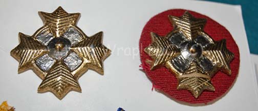 Description: A set of flag officer's commendations and ranks featured in Star Trek VI: The Undiscovered Country. The rank badges are gold and silver colored metal pins with wire backs, one is affixed to a red placement for the left sleeve forearm. The lot also contains gold fringed multi-colored trim with a pair of rank markers sewn on, said to be made from antique trim and no longer available, these were worn on the sleeve between the rank placement and the division strip. The citation bars are multi-colored fabric affixed to pin backed bars. The lot comes with a length of gold colored string for affixing to the front of a uniform double breast underneath the black trim. This set indicates the wearer to be a ‘vice-admiral’.