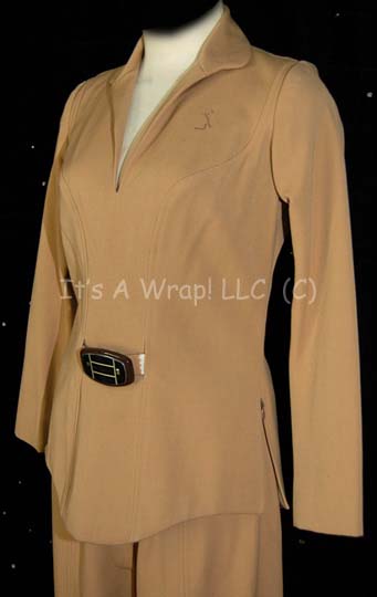 Description: A costume featured in Star Trek I: The Motion Picture for wear by Marci Lafferty in her portrayal of “Chief DiFalco”, relief navigator of the “USS Enterprise” following the disappearance of “Lt. Ilia” (Persis Khambatta). The costume is a Class-A collared Starfleet uniform with long sleeves and matching trousers, the top features threads remaining from a removed patch on the left breast. The costume comes with an attached plastic bio-monitor and the uniform top, and accompanying two pairs of yellow division strips with gold colored triangles indicating the non-commissioned rank of “petty officer” which were located separately from the costume with a tag reading ‘Marci Shatner’. The costume features a costumer’s tag reading ‘Star Trek, Marci Lafferty, Chief di Falco, Change #1, sc. 236, Int. bridge’, and a sewn in Paramount tag that is illegible