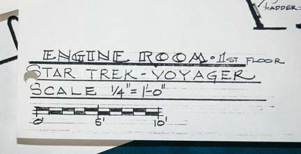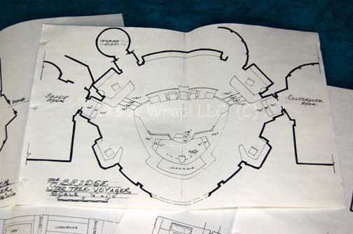 Description: A lot of schematics for sets featured in various episodes of Star Trek: Voyager. This lot consists of schematics for the quarters of virtually every major character on the ship from “Captain Janeway” (Kate Mulgrew), to “Kes” (Jennifer Lien), and even “Michael Jonas” (Raphael Sbarge), the character who was transmitting intelligence to the Kazon-Nistrim in season two. Also included are schematics for such sets as the bridge, conference room, the Captain’s ready room, mess hall, engineering, and the transporter room; of note are the schematics for the sets of “Chez Sandrine’s” and what is believed to be “Janeway Lambda one”, the Victorian holodeck program that “Captain Janeway” liked to run. The items feature information like the name of the set, the scale, or the show unless they are directly, sequentially after a labeled schematic and are an extension of it.