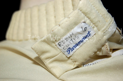 Description: A costume item featured in the third Star Trek feature film “The Search for Spock”. This item is a long-sleeved, Starfleet uniform undershirt in Command White, featuring collar ribbing, a zip up the back with clasps at the neck and a sewn in Paramount tag that reads ‘Robin Curtis 6’.