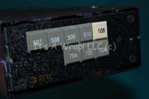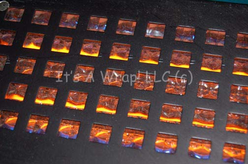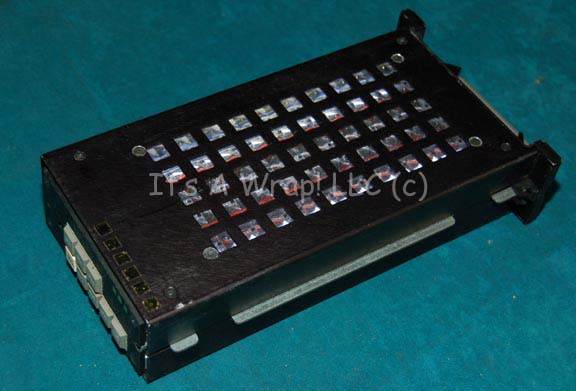 Description: A prop item believed to be featured in an episode of Star Trek: Enterprise. The item is a black metal case with multiple square openings for light to shine through, a pull handle on one end, and a series of rubber faux buttons on the other. The item lights up when a thre position switch is activated on the reverse, one position allows the item to glow blue, the other direction equates to red-orange. The item measures approx. 10.5 X 5.5 X 2 inches.