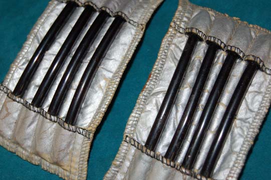 Description: A lot of two costume accents for a Starfleet trainee engineer’s white radiological suit appearing variously in Star Trek feature films from Star Trek II: The Wrath of Khan through Star Trek VI: The Undiscovered Country. The items are typically referred to as ‘thermal’ accents and were for any number of reasons removed from a pair of corresponding costume gloves. The items are reflective silver colored fabric with black rubber tubing fitted into positions across the face; they retain adhesive residue on the reverse and white paint from removal and measure approx. 5.25 X 2.75 inches.