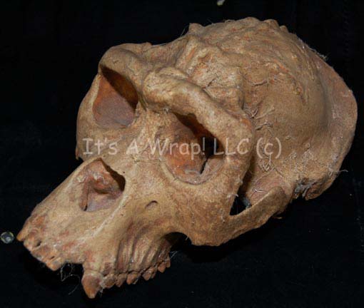 Description: A lot of four prop skulls acquired for Star Trek episodic television. The items are molded resin with hollow ‘brain cases’, and very realistic. Two of the item feature special affect make-up created to generate the appearance of head ridges. One skull is clearly meant to be a Klingon skull. The make-up appliances are painted to match the skulls and are seamlessly applied. The items are distressed to appear aged and ‘dirty’, and some feature ‘cobwebs’. The largest skull measures approx. 11 X 7 X 5 inches.