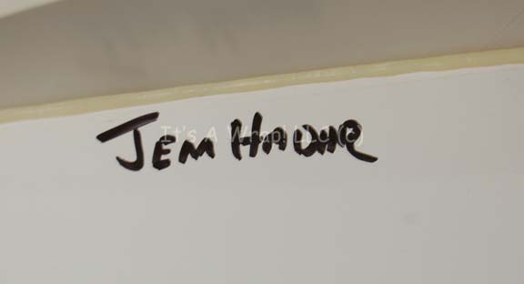 Description: A white foam core camera test model created for use on episodes of Star Trek: Deep Space Nine. The item depicts the underside of a Jem’Hadar attack fighter and was used to give dimension for camera framing. The item is damaged where an adhered mounting rod was removed on the topside, and is inscribed ‘Jem Hadar’. Minor other breaks in the foam core are present in the warp nacelles. The item measures approx. 28 X 31 X 4.5 inches.