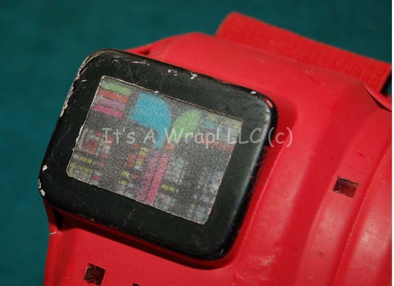 Description: A prop item featured in the ninth Star Trek feature film “Insurrection “. This is an electronic wrist scanner made for wear with the cloaked suit Starfleet used to observe the Bak’u; it is molded plastic, painted red featuring a small, backlit “screen” with a graphical application of “sensor data”, and embedded, red elements meant to emulate red LED lights. Due to time and use the paint is chipping off in places. The item measures approx. 5 x 3.5 x 3.5 inches.