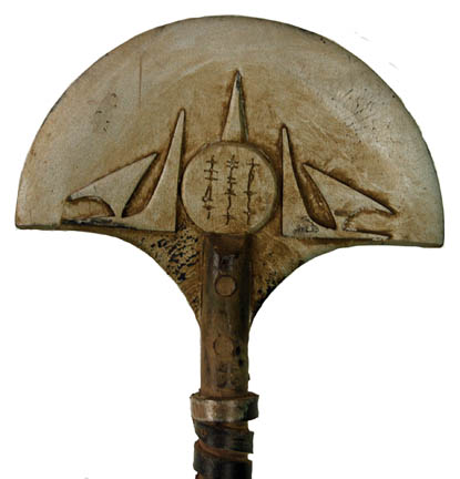Description: A prop item featured in the Star Trek: Enterprise episode “Kir’Shara”; wherein the “Enterprise NX-01” attempts to diffuse a stand-off between the Vulcans and Andorians while “Captain Archer” (Scott Bakula) and “T’Pol” (Jolene Blalock) search for an ancient Vulcan artifact. The ‘Lirpa’ is a traditional Vulcan sparring weapon used by competing males as part of the mating challenge during “Kal-if-fee” ritual during “Pon farr” and appeared in the episode to pay homage to the Original Series episode “Amok Time”. Vulcan Security forces used the item because energy weapons were rendered useless in “The Forge”. The item is made of a reinforced PVC pole with a crescent-shaped molded rubber blade and a weighted end. The blade has Vulcan markings on it and the entire weapon is distressed to appear ‘used’. The item measures approx. 54 X 8 inches. The item represents one of an extremely limited supply.