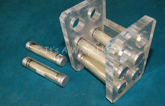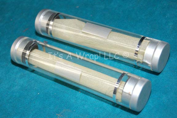 Description: A lot of prop test tubes and the corresponding rack similar to those featured in various episodes of Star Trek: Enterprise. This lot consists of a set of test tubes and tray featured in various episodes of Star Trek: Enterprise in sickbay; a sturdy, transparent, plexiglass rack with room for six, full-size, acrylic ‘test tubes’ featuring silver-colored lids and detail, and off-white contents inserted to make the tubes look ‘full’. Items have minor chipping and damage due to time and storage. The rack measures approx. 7 X 4.5 X 6.5 inches and the test tubes have an approx. height of 6 inches and diameter of one inch.
