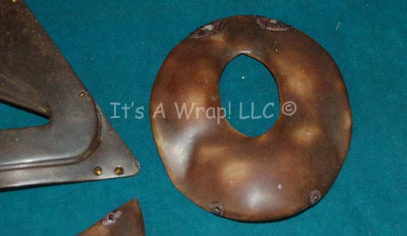 Description: A set of molded resin costume components created for use on Federation Security Council alien costumes which appeared in Star Trek IV: The Voyage Home and Star Trek VI: The Undiscovered Country during the Khitomer Accords. The items are irregularly shaped with holes made for sewing on to a costume. They vary in their brown coloration, fading to give the impression that they are made from bone. The largest item measures approx. 13 X 12 X 12.5 inches, the smallest equals 7 X 2.5 inches.