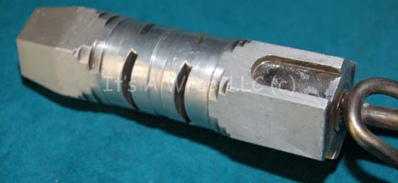 Description: A prop skewer featured in the Star Trek: Voyager episode “Gravity” used to hunt spiders as food by “Tom Paris” (Robert Duncan McNeill) and “Noss” (Lori Petty). The item is a solid metal grip with a three pointed skewer on the end that is actually quite sharp. The machined metal handle is distressed to appear used and the item measures approx. 9.5 X 2 inches.