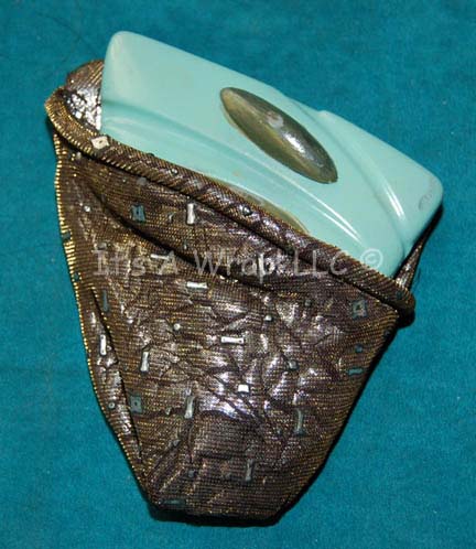 Description: A prop PADD (Personal Access Display Device) and a pouch created for the Star Trek: Enterprise episode “Unexpected”. The items were made for Xyrillian characters in the episode and the PADD is made from injection molded plastic with interface domes, while the pouch is made from the same fabric as the alien’s costumes, a metallic silver be speckled two layer fabric that retains a shimmer. The items measure approx. 6 X 4.25 X 0.75 inches, the reverse of the pouch features three clasps.