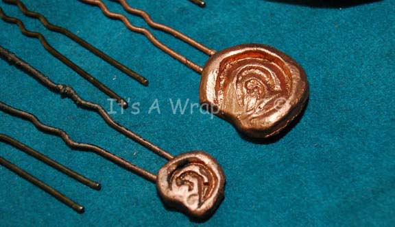 Description: A selection of Ferengi themed ear jewelry appearing in the Star Trek: Voyager episode “False Profits”. The jewelry is ear shaped sculpted decorations with hair pins attached. One large piece measures approx. 3 X 1 X 4.5 inches, the smaller pieces generally measure approx. 3.25 X 1 inch. Two are painted metallic gold, there are six items in the lot altogether.