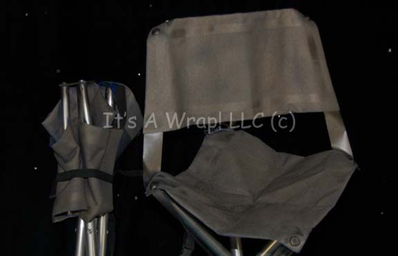 Description: A pair of fold out camping chairs appearing in the Star Trek: Enterprise episode “Strange New World” for use by the landing party that included “T’Pol” (Jolene Blalock), “Commander Tucker” (Connor Trinneer), “Travis Mayweather” (Anthony Montgomery) and more. The items are metal rods held in their center on a pivot that allows for deployment to the extent of a canvass seat and back. The canvas has been painted silver. The items fold into a lower profile measuring approx. 26 X 5 inches diameter, and fold out to approx. 19 X 19 X 30 inches.