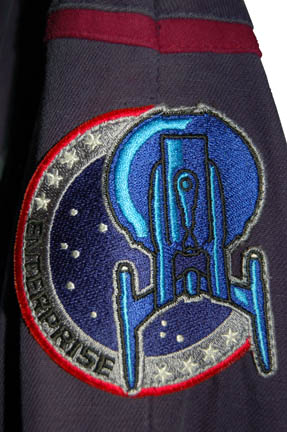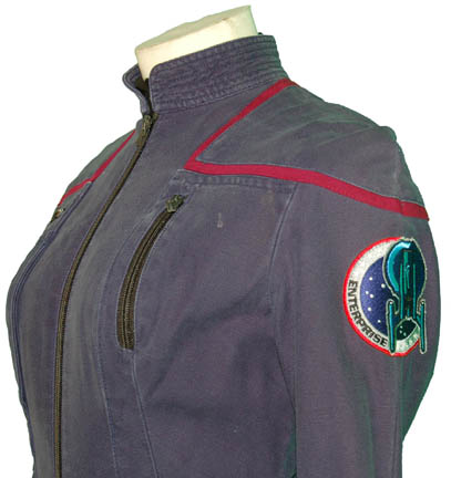 Description: A Starfleet uniform jumpsuit including the famous ‘Enterprise NX-01' left shoulder patch with red engineering trim around the shoulders. “Enterprise” costumes feature multiple zippered pockets, Velcro size adjustments at the wrist and ankles, and come complete with a black undershirt (this one a sleeveless tee).