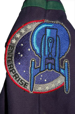 Description: A Starfleet uniform jumpsuit including the famous ‘Enterprise NX-01' left shoulder patch with blue sciences division trim around the shoulders. “Enterprise” costumes feature multiple zippered pockets, Velcro size adjustments at the wrist and ankles, and come complete with a black undershirt (this one a sleeveless tee) with detachable shoulder pads.