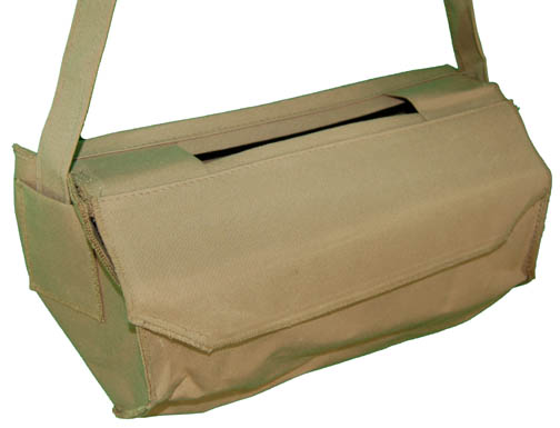 Description: These non-descript tan bags were used during various episodic Star Trek television and / or feature films. These futuristic bags have Velcro fastenings and fixed length matching straps. Each measures approx. 15 x 8 x 8 inches (not including strap).