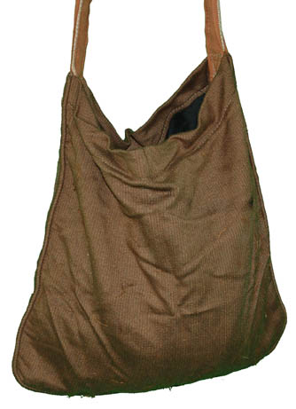 Description: This non-descript brown back was used during various episodic Star Trek television and / or feature films. It has a matching brown strap that is covered with strips of another shade of brown fabric. Measures approx. 15 x 14 ½ inches (not including strap).