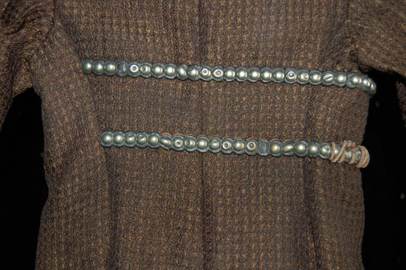Description: Captured by unsavory associated of her father, “Talla” (Jasmin Anthony) was kidnapped as ransom in an attempt to lure “Shran” (Jeffery Combs) out into the open. Luckily “Shran” was able to trade her back for an enormous gem, a flawless Teneebian amethyst, but he didn't show up without the help of his old friend “Captain Archer” (Scott Bakula) and the entire “Enterprise NX-01” crew. Rescued in the episode “These are the Voyages…”, the last episode of Star Trek: Enterprise “Talla” wore this costume. A child sized brown sleeveless jumpsuit worn underneath a black and gold dress with leather and metal buckles on the chest, with a black and brown knit trench coat, and leather boots that zip up the side.
