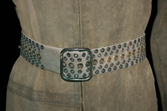 Description: “Commander T'Pol (Jolene Blalock) had been in a lot of difficult situations before the ‘Terra Prime’ incident, but when a group of terrorists created a hybrid clone of “’Trip’ Tucker” (Connor Trinneer) and “T’Pol” she had to go undercover to see how it was possible. Their mission took them to the ‘Orpheus Mining Complex’ on the moon where miners wear durable coveralls to protect them in the harsh elements. This impressive jumpsuit is made of durable tan material with a matching mesh section in across the lower back and has intentional distressing for continuity. It has Velcro and lace up size adjustments at the cuffs and ankles, zips up the front, and features the ‘Orpheus Mining Colony’ patch on the right breast. Jolene Blalock wore this while portraying “T’Pol” in the episode “Demons” and “Terra Prime” of Star Trek: Enterprise. The costume also comes with a matching canvas belt with multiple holes and boots worn in the both the aforementioned episodes and “Marauders” from the second season of the show.