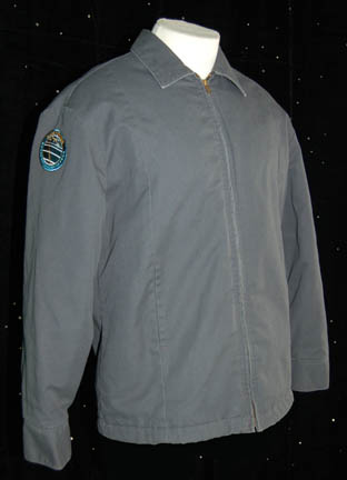 Description: “Charlie Nichols” (Adam Paul) was a helmsman onboard the Earth Cargo Ship ‘Horizon' during the Star Trek: Enterprise episode “Horizon”. Under the command of Paul Mayweather, Nichols was known for his ungainly warp jumps. This is his gray padded zip up jacket from the “Horizon” episode complete with the ‘E.C.S. Horizon’ patch sewn on the right sleeve. The inside tag reads “Enterprise – Adam Paul #046”