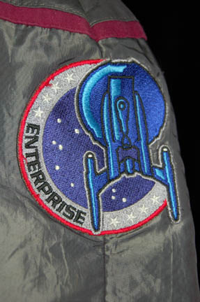 Description: “Malcolm Reed” (Dominic Keating) was a lieutenant who served onboard Enterprise NX-01 as armory officer during the Star Trek: Enterprise series. This jacket was worn by Marty Murray and Clark Tucker; two stuntmen who performed Keating's stunts during the filming of Enterprise. The ‘Away-Team’ jacket is gray with engineering red trim around the shoulders and the famous NX-01 patch on the left shoulder. It features multiple zippered pockets and a zip up the front. It comes complete with costume tag.