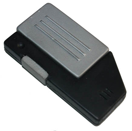 Description: A rubber communicator used in various episodes of Star Trek: Enterprise molded to be in the closed position for fit into a pouch (sold separately). This prop is painted black with metallic silver accents, measuring approx. 3.75 X 2 X .25 inches.