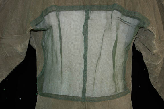 Description: This impressive jumpsuit is made of durable tan material with a matching mesh section across the lower back and has intentional distressing for continuity- to appear used. It has Velcro and lace up size adjustments at the cuffs and ankles, zips up the front, and features the ‘Orpheus Mining Colony' patch on the right breast. Costumes like this were featured in the episodes “Demons” and “Terra Prime” of Star Trek: Enterprise.