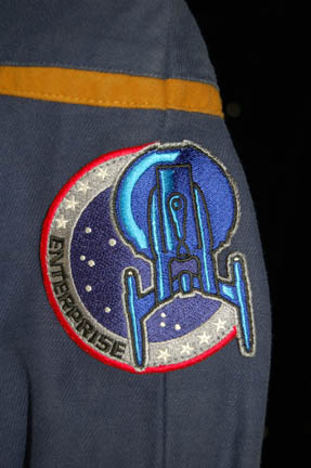 Description: A Starfleet uniform jumpsuit including the famous ‘Enterprise NX-01' left shoulder patch with command gold division trim around the shoulders. “Enterprise” costumes feature multiple zippered pockets, Velcro size adjustments and zippers at the wrists and ankles, come with detachable shoulder pads, and a black, sleeveless, button up undershirt. The sewn in Enterprise tag indicates wear by ‘Sherrie Robertson’.