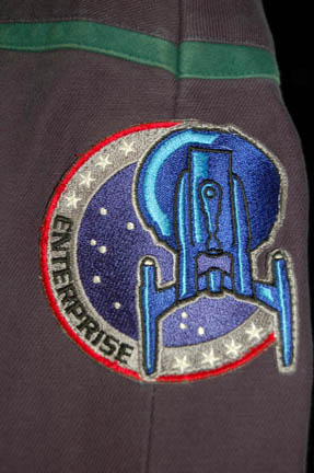 Description: When "Ensign Hoshi Sato" (Linda Park) signed on to become "Enterprise NX-01" communications officer she was more impressed with the Klingon language than she was with the idea of space travel. Eventually she learned to be more aggressive in tense situations and to deal with the noises the untried ship made while traveling at warp speed. Her Stafleet uniform is made up of a jumpsuit including the famous 'Enterprise NX-01' left shoulder patch with sciences blue division trim around the shoulders. "Enterprise" costumes feature multiple zippered pockets, Velcro size adjustments and zippers at the wrists and ankles, come with detachable shoulder pads, and a black, sleeveless, button up undershirt. The sewn in Enterprise tag indicates wear by 'Linda Park, 1st Season, old style'.