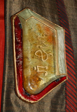Description: A Vulcan costume worn by LeRoy D. Brazile during his portrayal of a younger “Tuvok” in the episode “Gravity” of Star Trek: Voyager. We see this costume during flashback sequences involving Tuvok's training to suppress his emotions. It is made up of thin shiny beige colored pants with chevron cut ankles and a burnt orange colored shirt with tan sleeves that have overlapping folds on the forearm, all covered by a shiny brown vest with featuring a ‘Vulcan’ character letter badge on the left side. The sewn in Voyager tags are inscribed ‘LeRoy Brazile’.