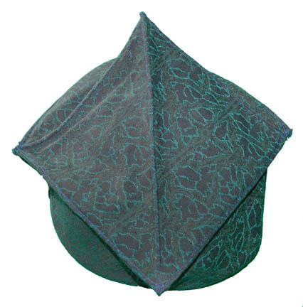 Description: Made for episodes of Deep Space Nine, this Vedick's costume is comprised of teal pants with elastic suspenders, a gray overcoat with mid arm sleeves ending to allow sewn in teal sleeves to protrude that match the pants, two gray belts that match the overcoat, and a full length over robe colored green that snaps onto the overcoat. An over the shoulder chain is attached in the front to a resin Bajoran symbol painted metallic silver and gold, and in the back to a ‘silver’ metal Bajoran medallion that measures approx. 4 X 3.5 inches. A wedge hat is also included to match the over robe. The character of “Teero” was played by Keith Szarabajka in the episode “Repression”. The costume was also used in Deep Space Nine, a tag sewn in indicates wear by ‘Norman Parker.