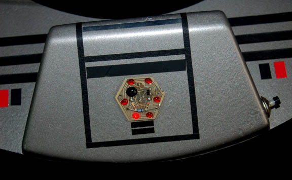Description: From the episode “Things Past” of Star Trek: Deep Space Nine, this item was placed around the head to monitor brain wave functions while a patient was in a coma. “Dr. Bashir” (Alexander Siddig) used one on “Garak” (Andrew Robinson) and another on “Dax” (Terry Farrel) after they arrived at the station, comatose, from a run in with a plasma storm in their region of space. The prop is made from molded plastic components with working lights that flash in sequence both green and red, and a series of clear slides with metallic silver and gold accents. It measures approx. 15.5 X 9 X 17 inches.