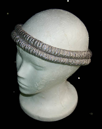 Description: Featured in the episode “Angel One” of Star Trek: The Next Generation this costume was worn by “Wesley's Friend” as they came out of the holodeck, accidentally tosseing a snowball into the face of “Captain Picard” (Patrick Stewart). The costume is a full length jumpsuit made from silver crimped fabric that comes with a pair of matching spats and a headband. The costumer’s tag reads ‘Wesley’s Friend, Chris Hall’.