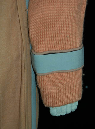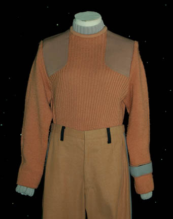 Description: Ordered to ‘Nimbus III', the “Enterprise-A” crew respond to a hostage crisis in these commando style field duty uniforms, caramel colored wool sweater with matching pants, and a green medical division undershirt, this costume was featured in Star Trek V: The Final Frontier for wear by Nichelle Nichols as “Uhura”. The sweater features a gray division strip around the left forearm and a sewn in wrap with clasps to keep the garment tucked in; the pants feature a gray stripe down the seams of both legs, and black belt loops for the attachment of a Starfleet belt. The undershirt with this costume is gray and has a ribbed neck and cuffs. The costume components all feature sewn in tags that read ‘Uhura’ or ‘Nichelle Nichols’ and the corresponding boots have ‘Nichols’ written in permanent marker.