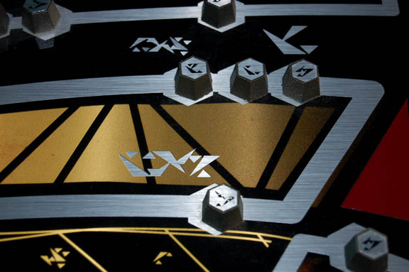 Description: A large smoked acrylic computer interface panel with a translucent application and silver and metallic red application accents made to section out the panel into differing modules, and other metallic silver applications used as ‘Son'a’ character letters on both the panel and the adhered raised plastic buttons. The backing is made to be back lit and when exposed to light depicts a ‘visual’ and ‘sensor’ style readout of the ‘Briar Patch’, the region in which Star Trek IX: Insurrection takes place. Measures approx. 23.25 X 15.5 X 1.25 inches. Penned in on the upper right hand corner of the front is an arrow pointing up and ‘#2’ with removable markings.