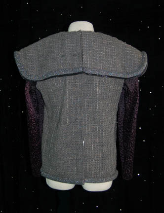 Description: A Klingon uniform top worn by David Froman in his portrayal of “Captain K'Nera” in the Star Trek: The Next Generation episode “Heart of Glory”. On assignment to retrieve Klingon outlaws who have taken refuge on the “USS Enterprise-D”, and then taken it hostage, “K’Nera” is a Klingon who will take prisoners. This uniform top is gray patterned with padded silver sparkle trim around the shoulders and waist, with black crinkle fabric sleeves. The costumer’s tag indicates wear by ‘David Freeman’ though the “Star Trek Encyclopedia, Updated and Expanded Edition” by Mike and Denise Okuda, the “Star Trek: The Next Generation Companion” (copyright 1995) by and “Memory Alpha”, a secondary site to “Wikipedia” all indicate the costume was worn by ‘David Froman’ despite what the costumer’s tag reads.