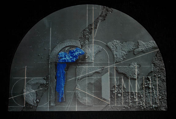 Description: This great piece hung in the Tandaran “Grat's” (Dean Stockwell) office at the detention center during the Star Trek: Enterprise, season 1 episode “Detained”. It also made a reappearance in the bar scenes of the season 4 episode “Home”. Set dressing was often reused over again so it is quite possible this picture made even more appearances! The print is set in a silver frame with a black fabric oval arch mat. The geometric design incorporates white lines on multiple axes against a gray background. The monotony of the piece is broken by a prominent splash of blue just off center. Measures approx. 40 ½ x 31 inches.