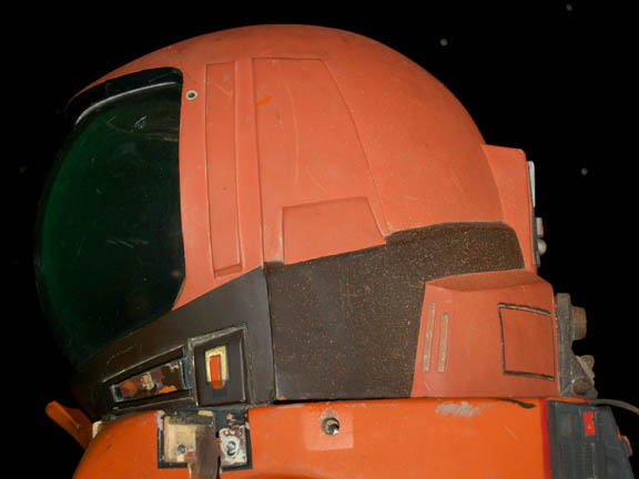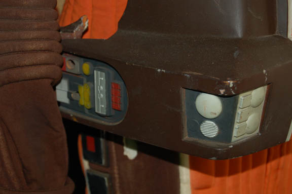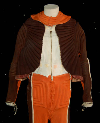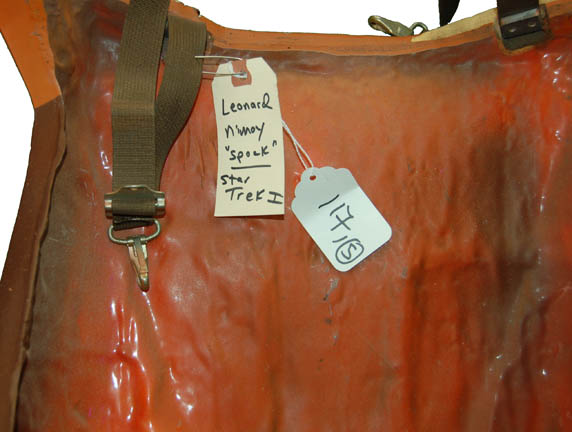 Description: This authentic spacesuit was featured prominently in Star Trek I: The Motion Picture when “Spock” (Leonard Nimoy) left the “Enterprise” to conduct a mindmeld with the ‘V'Ger Probe’. Made from brown, orange, and white materials with insets of plastic and metal accents, this costume features an astonishing array of ribbed details at the knees, elbows, and around the chest and waist. Due to time and storage conditions the costume features a degree of wear as some of the orange of the exterior has bled into the white of the interior and internal padding has collected at the ankles and cuffs, yet the costume retains its overall intact appearance. The costume comes complete with a pair of gloves, a collar that Velcro’s into place around the neck and on the shoulders, and a pair of spats that clasp onto the legs of the jumpsuit. The costume also features a molded chest frame for a helmet; the frame features internal foam padding with multiple cutouts, a buckle and belt and lace holes on the side to keep it together; screw holes and screws are evident and both the back and the front feature multi-color painted accents and details. The helmet maintains it’s large fishbowl like faceplate and has internal padding, mounts for attachment to the frame, and an approximate 8.5 X 1.75 inch rectangular hole cut into the upper right hemisphere of the item for an undisclosed reason revealing internal foam. The interior of the gloves are inscribed ‘L. Nimoy’, the chest frame reads ‘Spock’ with a section of the foam missing, and the costume jumpsuit reads ‘Nimoy’ at the upper back. This incredible, once in a lifetime costume is an exceptional artifact from 1979 and its condition is excellent given the materials available at the time. The workmanship still holds up and the style it simply something of an era that would be difficult to duplicate.