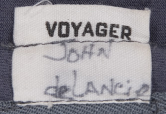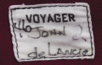 Description: (Paramount-TV, 1994-2001) Black and maroon Starfleet duty uniform with grey undertunic and detachable shoulder pads, worn by John de Lancie in his role as “Q.” Both garments include internal Voyager labels marked <em>“John de Lancie”</em>. Also included are original costumer’s tags marked <em>“Show #265 ‘Q2’”</em> indicating the costume was used in the final season episode, <em>“Q2”</em>.