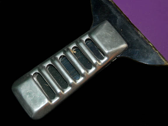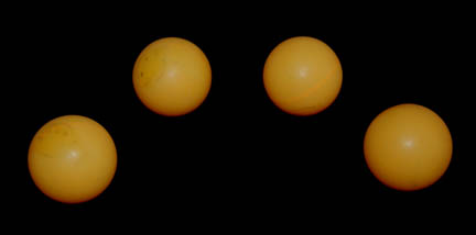 Description: “Tom Paris” (Robert Duncan McNeill) and “Seven of Nine” (Jeri Ryan) challenge “Harry Kim” (Garrett Wang) and “B'Elanna Torres” (Roxann Dawson) to a ping pong tournament with “Neelix” (Ethan Phillips) keeping score in the Star Trek: Voyager episode “Relativity”. These are two of the of the racquets used during the filming of these scenes and are each made of angled clear acrylic with purple ping pong racquet rubber on the surface. Each handle is made of metal with decorative holes cut along its length. Included are four standard size orange ping pong balls also used for filming. Each racquet measures approx. 10 ¼ x 6 inches.